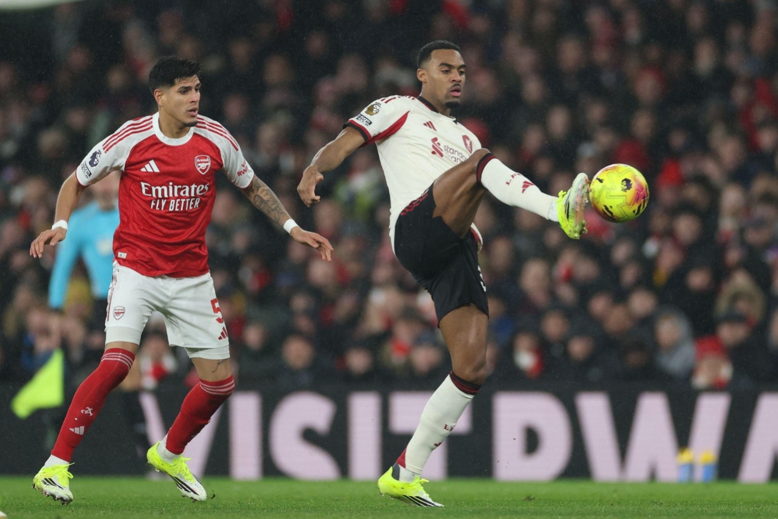 ഇംഗ്ലീഷ് പ്രീമിയർ ലീഗിൽ എമിറേറ്റ്സ് സ്റ്റേഡിയത്തിൽ ആഴ്സണലിനെ ഗോൾ രഹിത സമനിലയിൽ തളച്ചു ലിവർപൂൾ. മത്സരത്തിൽ നന്നായി തുടങ്ങിയ ആഴ്സണലിന് മുമ്പിൽ ലിവർപൂൾ വിയർക്കുന്നത് ആണ് ആദ്യം കാണാൻ ആയത്. സാകയും ട്രൊസാർഡും വിങിൽ അപകടം വിതച്ചപ്പോൾ ലിവർപൂൾ പതറി. എന്നാൽ ഇത് ഒന്നും ഗോൾ ആക്കി മാറ്റാനോ ആലിസനെ ശക്തമായി പരീക്ഷിക്കാനോ ആഴ്സണലിന് ആയില്ല. ഇടക്ക് ആഴ്സണൽ പ്രതിരോധത്തിലെ ആശയാകുഴപ്പത്തിൽ നിന്നു ലഭിച്ച അവസരത്തിൽ ബ്രാഡ്ലി തൊടുത്ത ഷോട്ട് പോസ്റ്റിൽ തട്ടി മടങ്ങിയത് ആണ് ലിവർപൂളിന് പറയാൻ പറ്റിയ അവസരം. പ്രതിരോധം ശക്തമാക്കിയ ലിവർപൂൾ ഗോൾ വഴങ്ങാതെ പിടിച്ചു നിന്നു. രണ്ടാം പകുതിയിൽ ബോളിൽ കൂടുതൽ നിയന്ത്രണം ഏറ്റെടുത്ത ലിവർപൂൾ ആഴ്സണലിന് വലിയ അവസരം ഒന്നും നൽകിയില്ല. എന്നാൽ ആഴ്സണൽ ഗോളിലേക്ക് ഒരു ഷോട്ട് പോലും ഉതിർക്കാനും അവർക്ക് ആയില്ല. 2010 നു ശേഷം ഇത് ആദ്യമായാണ് ലിവർപൂൾ ഒരു പ്രീമിയർ ലീഗ് മത്സരത്തിൽ ഒരു ഷോട്ട് പോലും ഗോൾ പോസ്റ്റിലേക്ക് അടിക്കാൻ പരാജയപ്പെടുന്നത്.